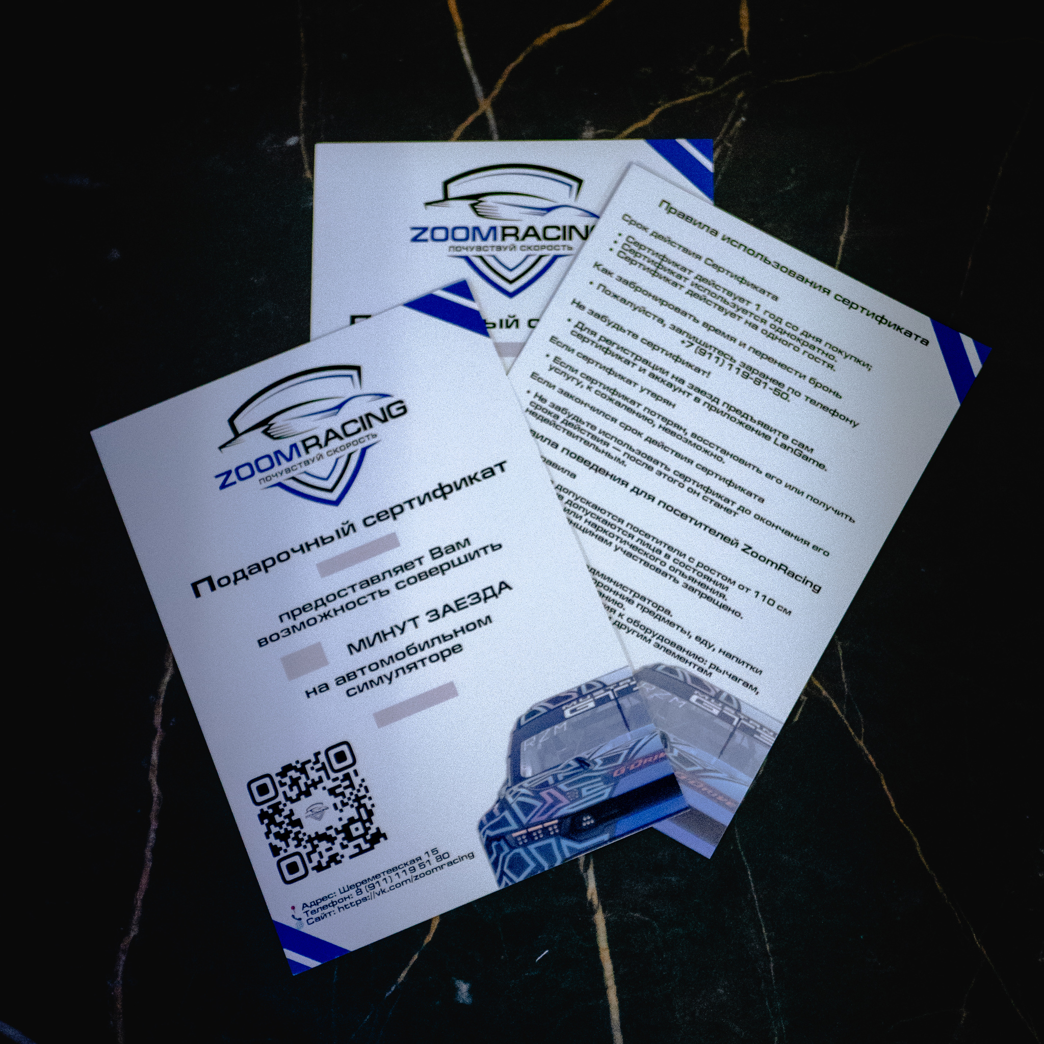 ZoomRacing предлагает Вам подарочные сертификаты на заезды на гоночном симуляторе. Сертификат даёт право на заезд выбранной продолжительностью.